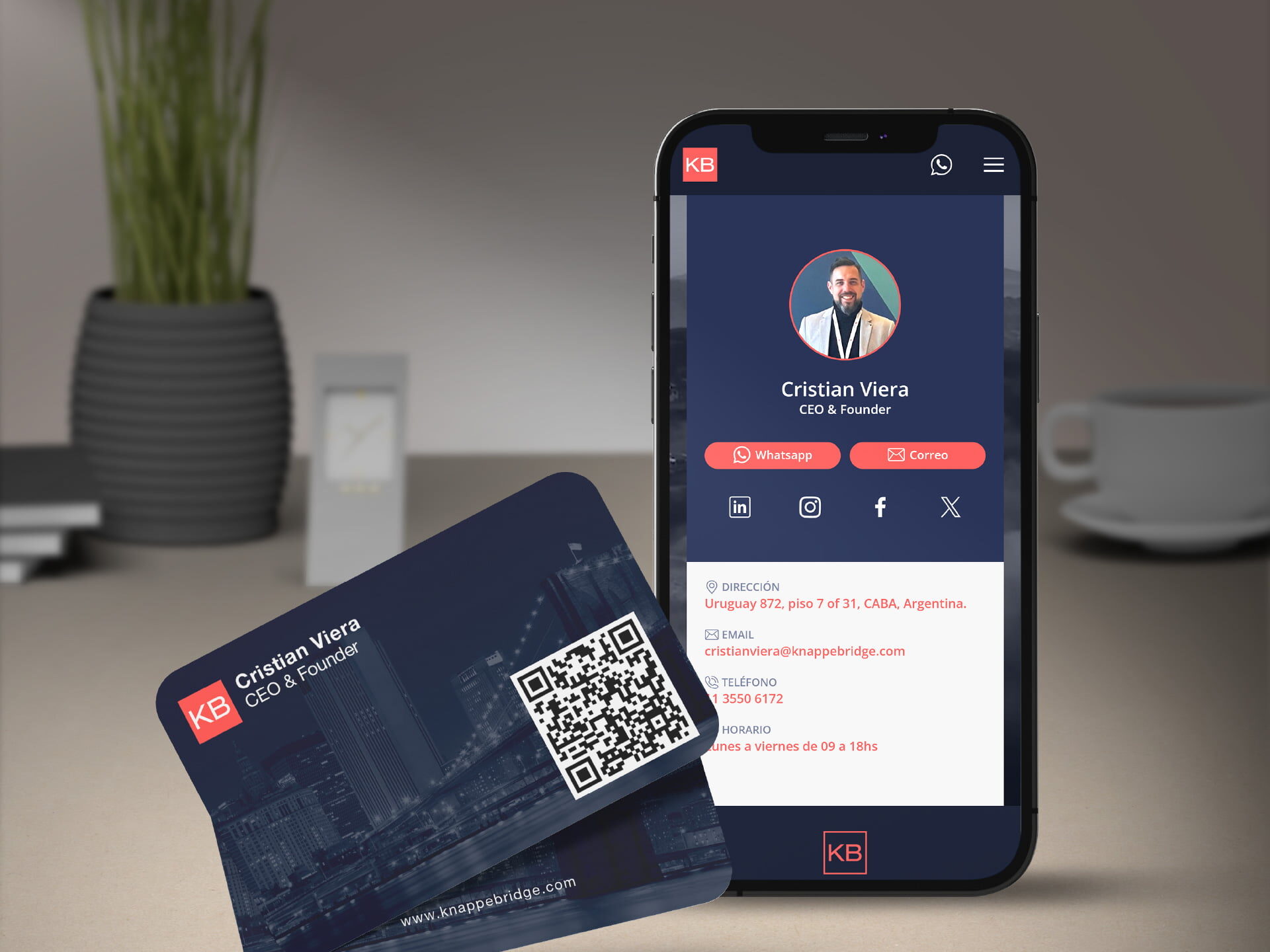 Se diseñaron tarjetas QR de estilo minimalista y corporativo para Knappe Bridge, enlazando cada una al perfil online personalizado de…