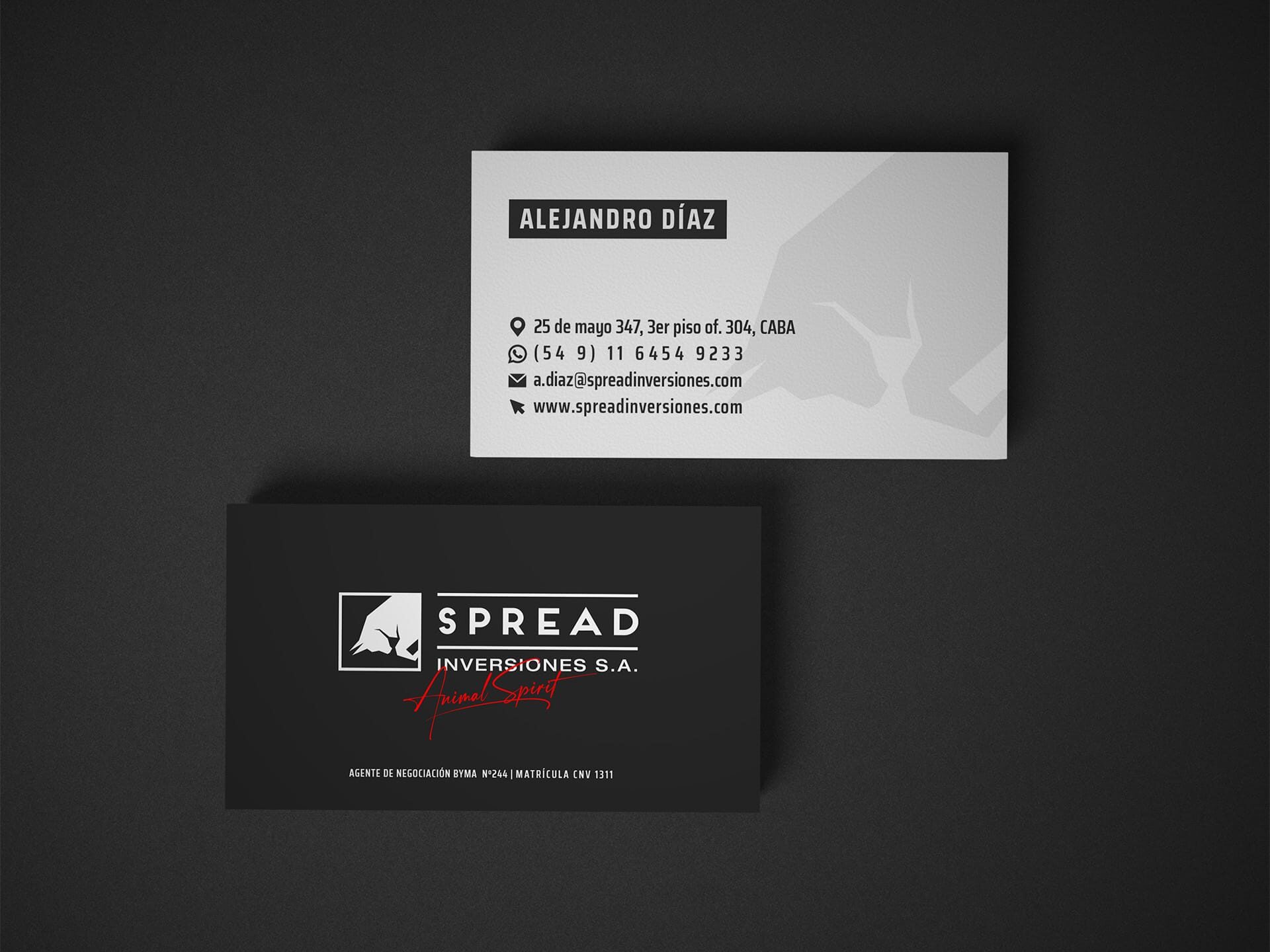Diseño de tarjetas corporativas para firma bursátil, siguiendo la línea visual sobria de la marca. Se cuidó especialmente la disposición…